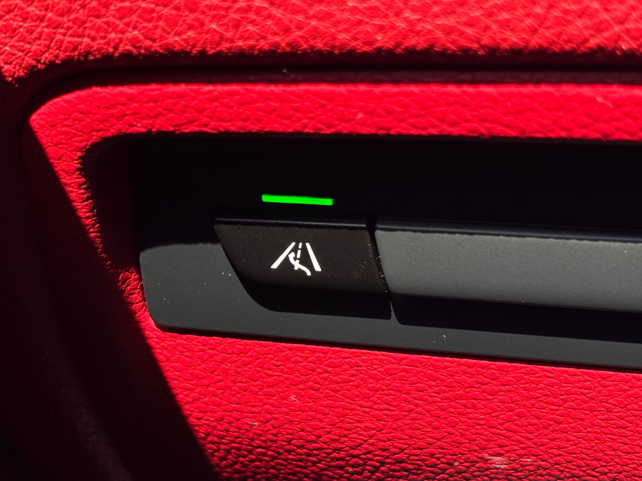 Inside, the cabin is a showcase of BMW’s attention to detail, with the red leather interior contrasting beautifully against black high gloss accents and brushed aluminum trim. The Premium Package ensures the driver is surrounded by modern luxuries like a full heads-up display, navigation, and a power sunroof that enhances both visibility and cabin ambiance. The seating is designed for comfort and support, with multi way adjustability and heating for the colder months. The M Sport steering wheel provides a thicker, more tactile grip, while paddle shifters give the driver a more dynamic connection to the 8 speed automatic transmission. The Harman/Kardon premium sound system fills the cabin with concert-quality audio, while BMW’s intuitive iDrive system ensures full control of navigation, media, and connectivity features with ease.