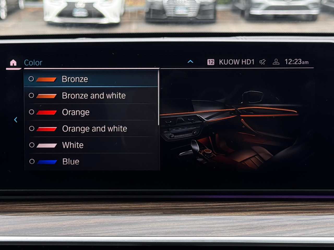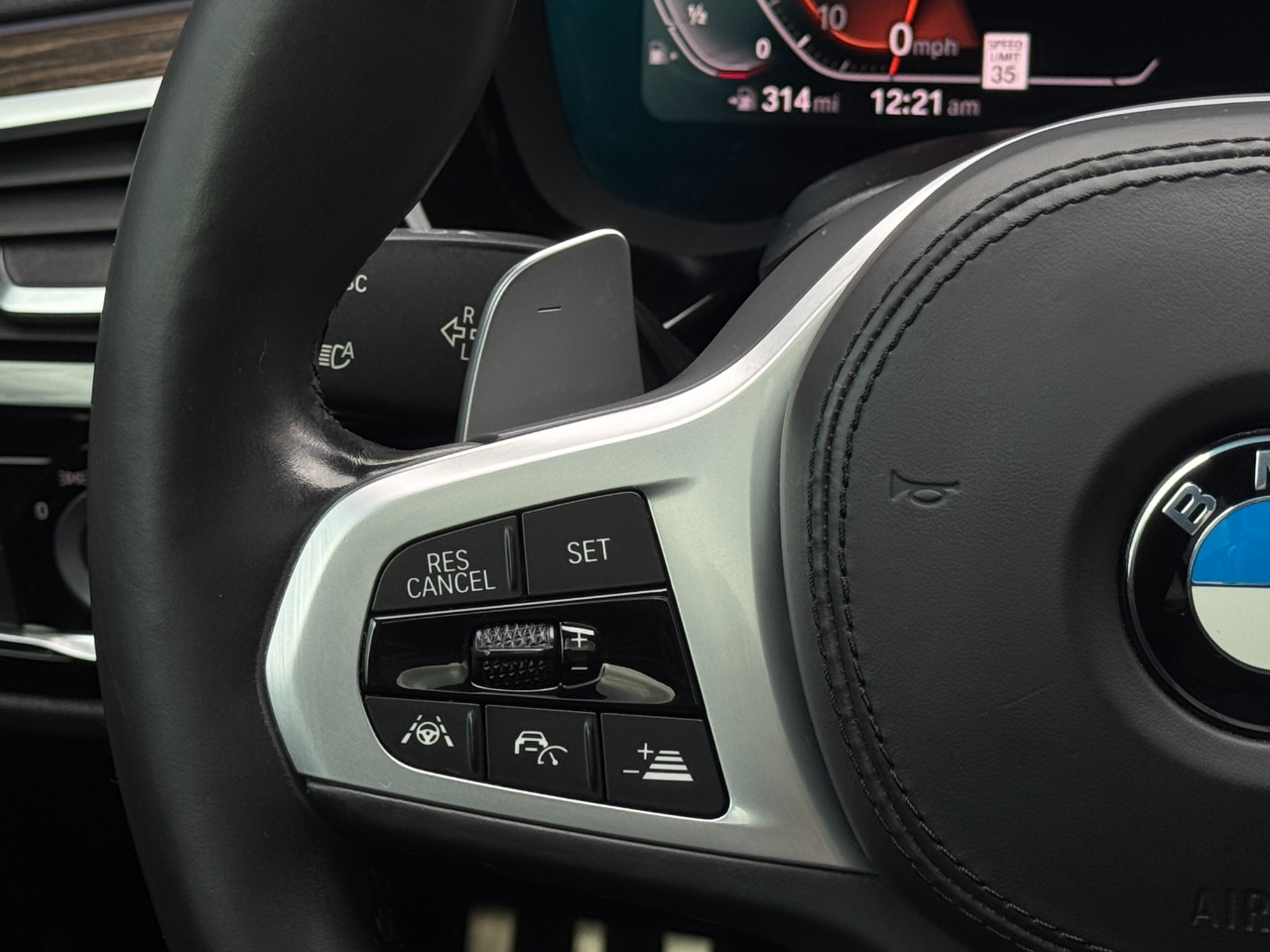 The interior is loaded with the right options. Black Dakota leather with contrast stitching and Fineline Ridge wood trim give the cabin a modern, upscale vibe. The Executive Package brings everything you want in a top-tier BMW — soft-close doors, gesture control, ambient lighting, and the full digital display setup. The Multi-Contour seats adjust every way possible and are some of the most comfortable in the business. Ceramic Controls add that extra touch of class that separates the high-end builds from the rest. The Harman Kardon sound system fills the cabin with rich, clear audio that makes every drive feel special. Every surface feels solid, every button clicks with precision, and it still smells like a luxury car inside.
